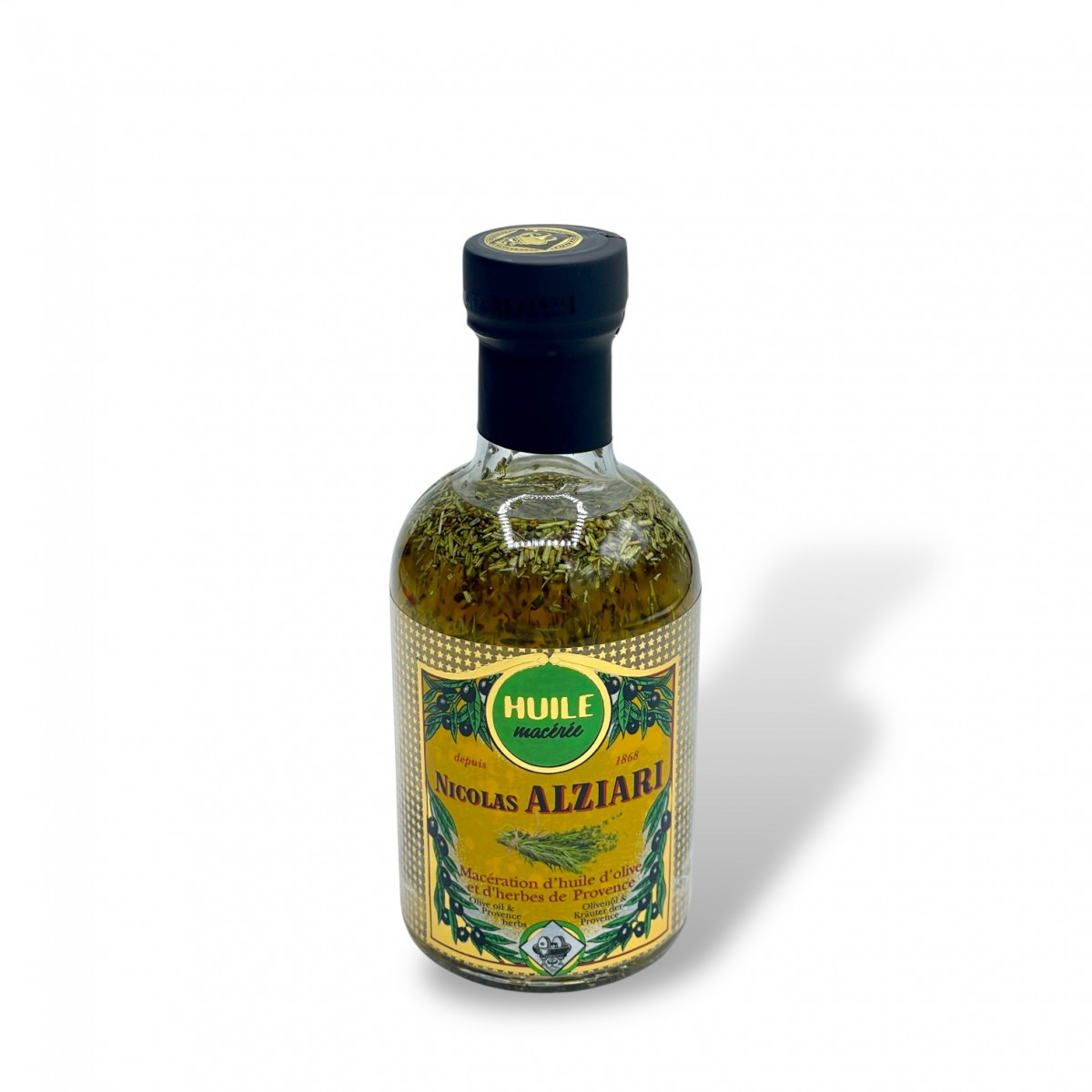 Afin de réaliser cette préparation, nous avons utlisé l'une de nos meilleures cuvées d'huile d'olive vierge extra que nous avons laissé lentement macérer avec de fines herbes de Provence. Un parfum du sud va envahir vos plats !