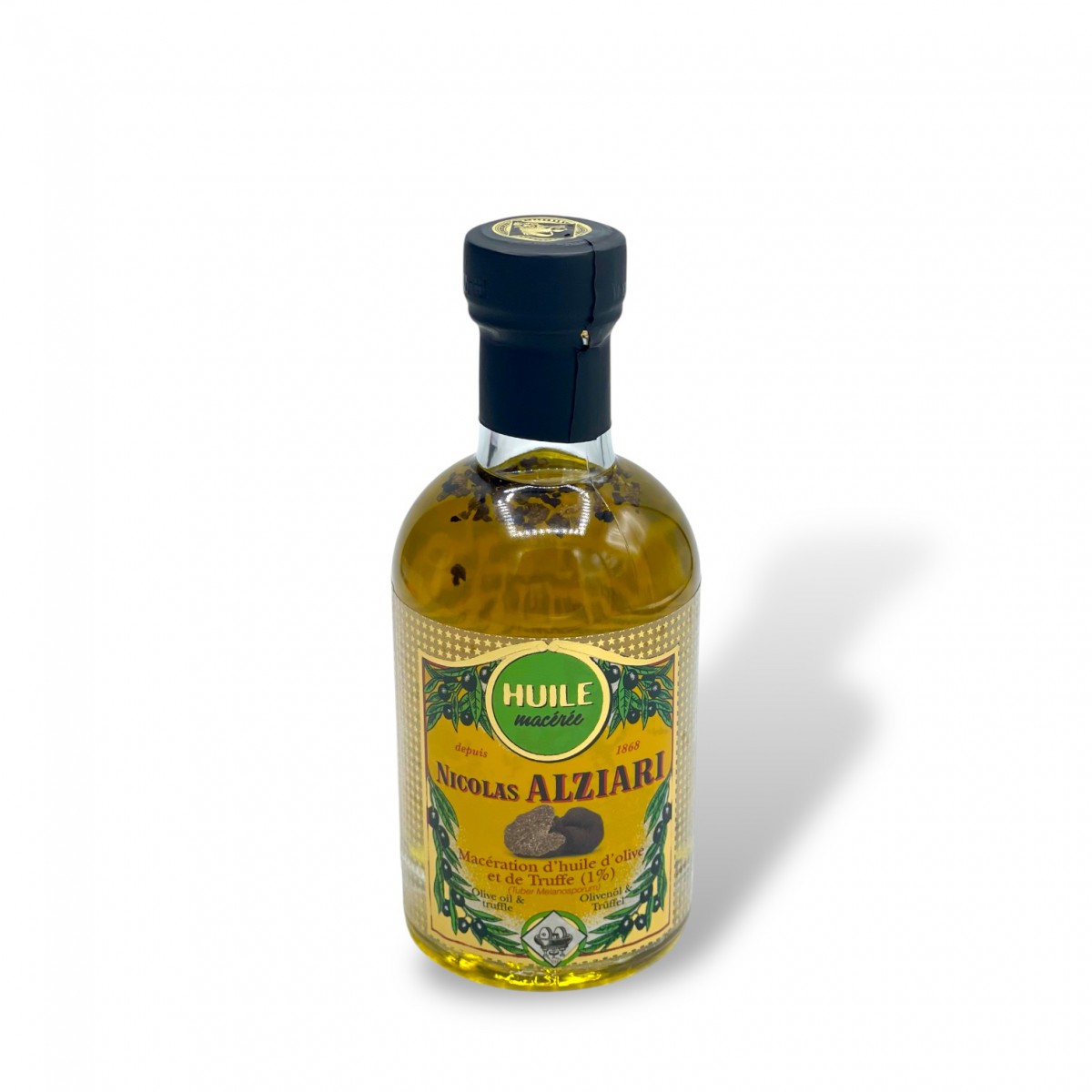 97% extra natives Olivenöl, 2% natürliches Trüffelaroma , 1% getrocknete Trüffelscheibchen (Tuber Melanosporum 1%).